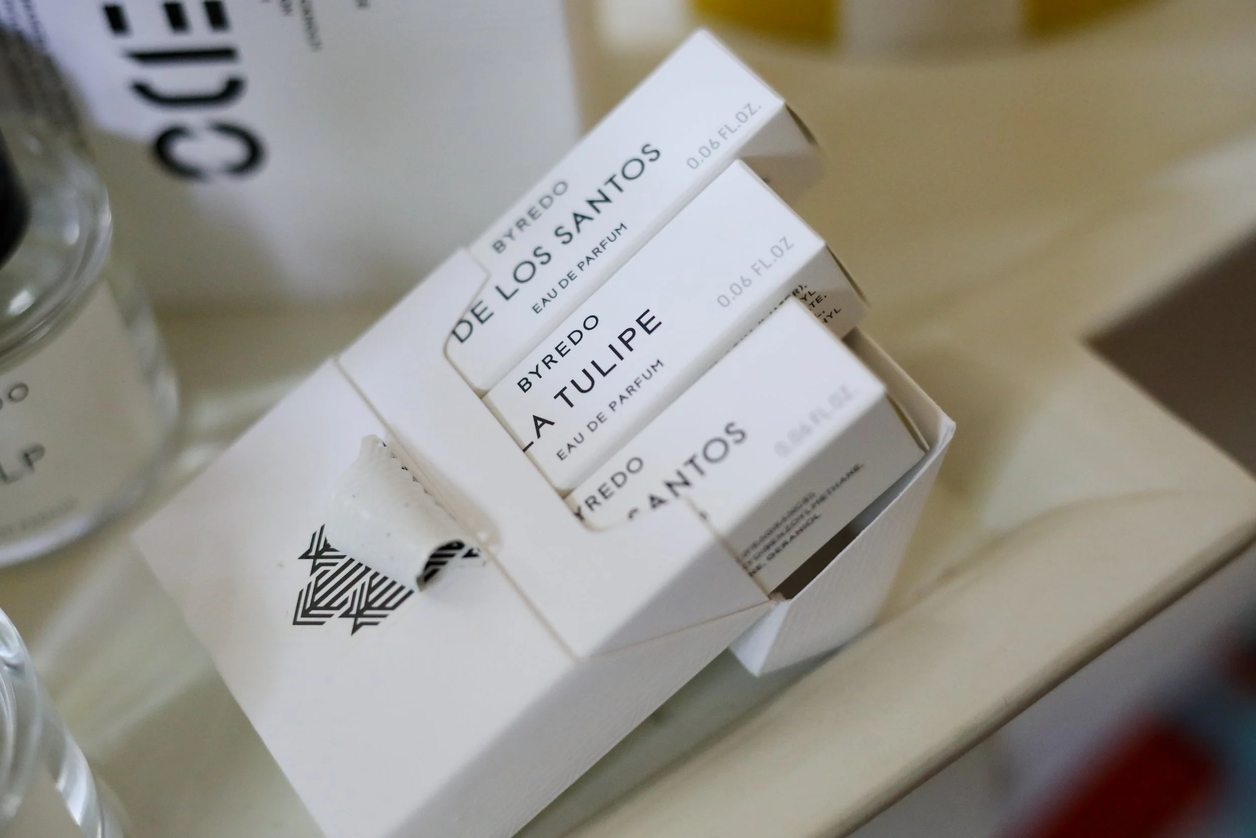 I also purchased De los Santos. I found it to be the perfect everyday wear to work scent. My husband also likes it. His other Byredo favorites were Eleventh Hour and Velvet Haze. I love that the majority of Byredo scents are unisex so my husband and I both can collect and enjoy them together.