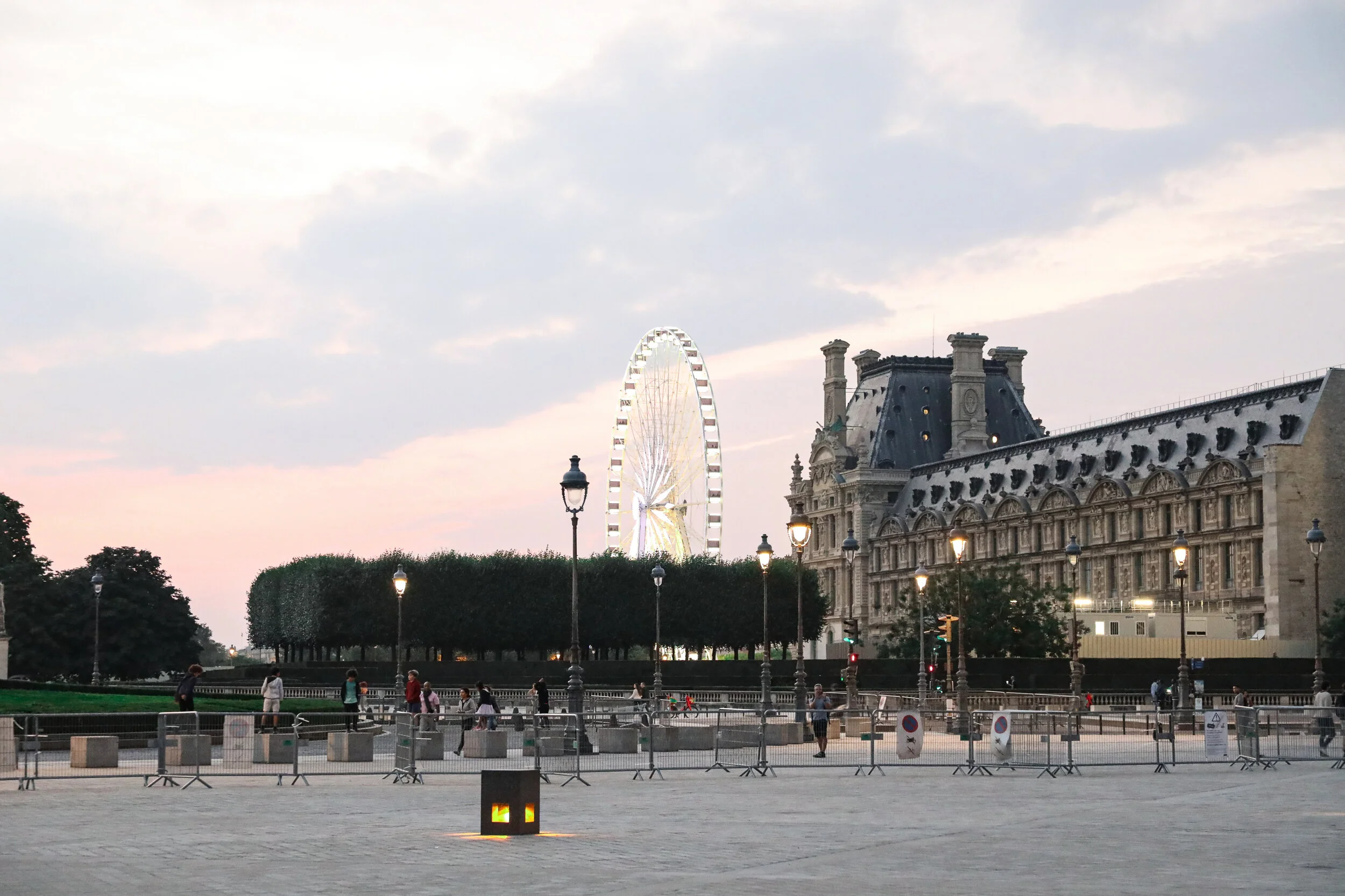 There’s a courtyard and lots of restaurants right along the perimeter of the museum that have a direct view to the pyramid. There are also fountains on each side of the pyramid, which is the perfect place to sit and spend time with someone or just people watch. The vibe at sunset is amazing, and reminds me of New York. There’s people from all walks of life, some playing music, others riding scooters, and vendors selling trinkets. ( I ended up getting a couple key chains and a mini Eiffel Tower that lights up for my youngins.)